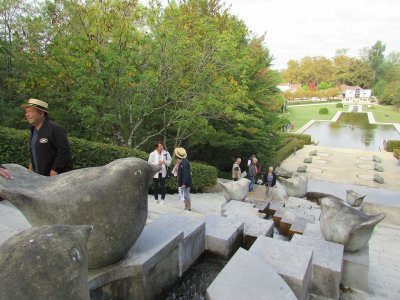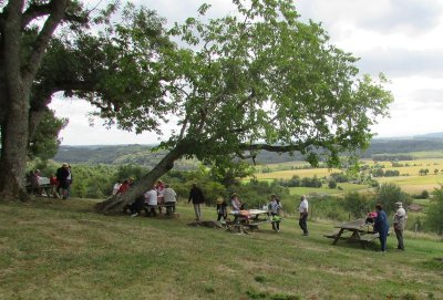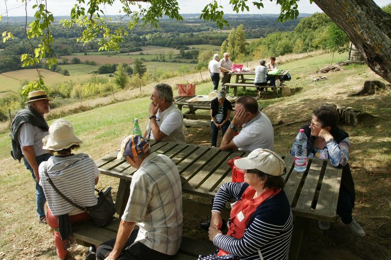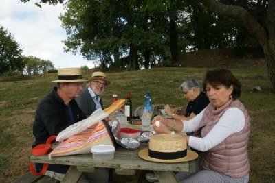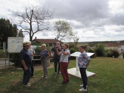 Après un petit tour dans les jardins de la maison Guérard, nous reprenons la route vers la Stèle de Gibraltar qui marque la rejointe de trois voies du chemin de Compostelle (voir le lien).