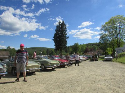 Il y a un monde fou en ce samedi, une concentration de motos, une autre sortie de voitures de collection...