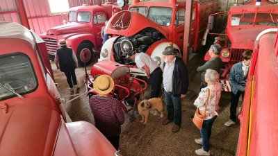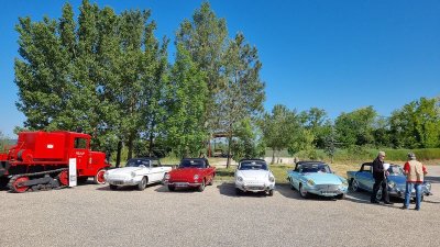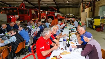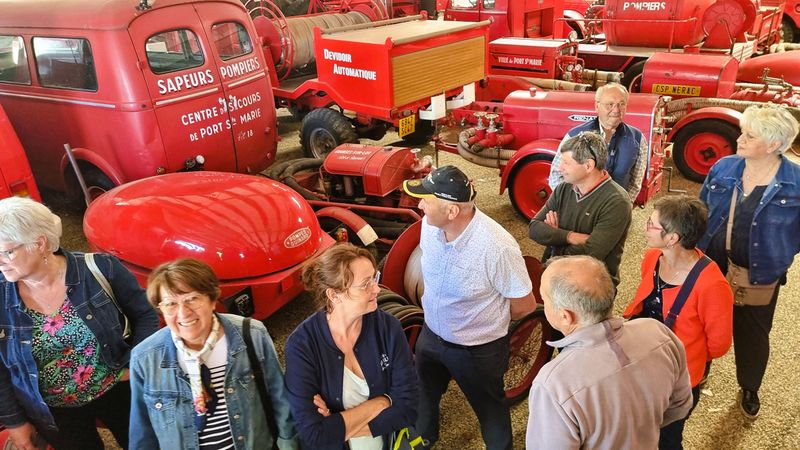 Vendredi matin, les équipage ont rendes-vous au conservatoire des véhicules de pompier et du matériel agricole du Temple sur Lot. Une visite guidée est organisée par nos hôtes. Nous piqueniquons sur place avec les membres de l’association qui développent et font vivre ce site.