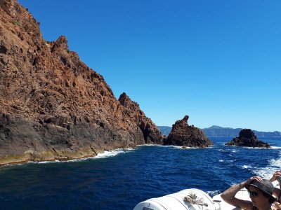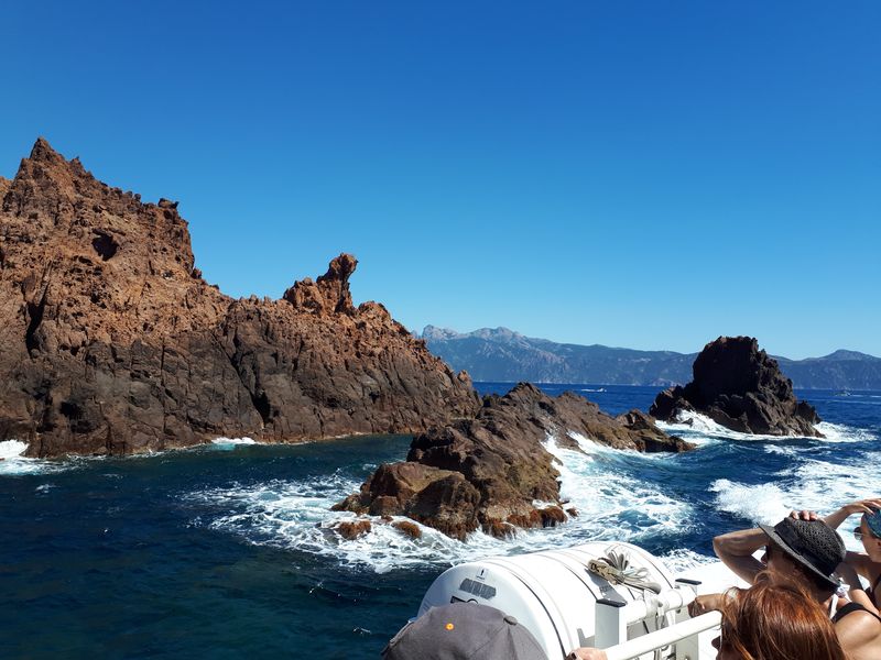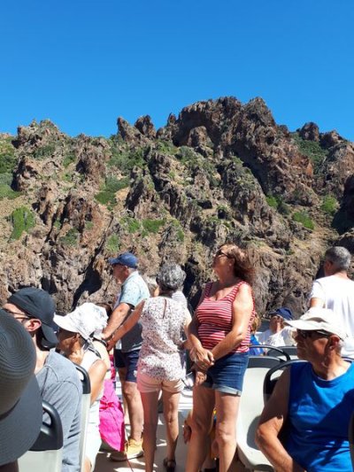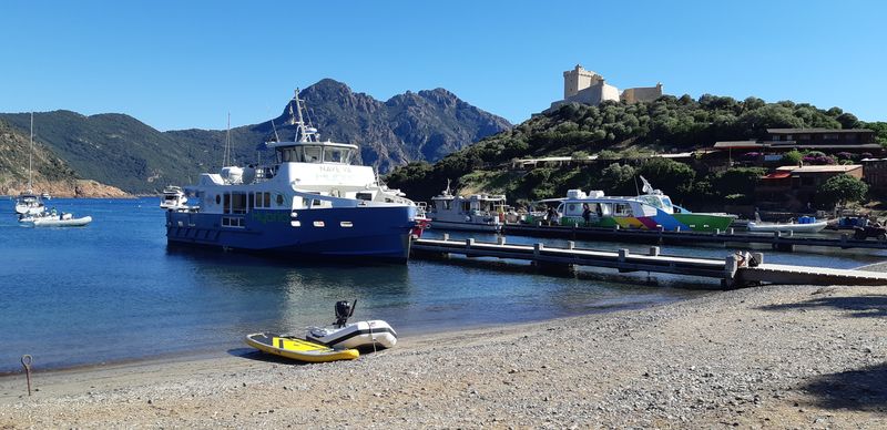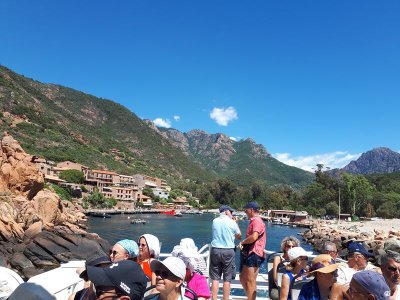 Regroupement des équipages avant d’embarquer pour une croisière découverte de la réserve de Scandola. Le bateau fait escale dans le port de Girolata pour déguster quelques curiosités locales...