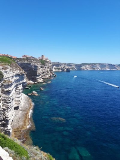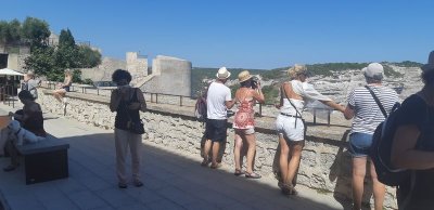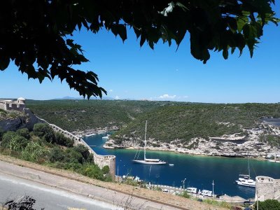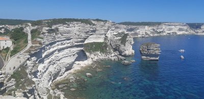 Départ de Propriano après un solide petit déjeuner, incursion vers l’intérieur des terres aux paysages sauvages et forêts préservées, passage à Sartène, la plus Corse des villes Corses selon Prosper Mérimée...Nous rejoignons la côte qui nous mène vers Bonifacio où la première mission est de trouver où stationner, pique-nique avant de rassembler le groupe pour une visite de la ville avec notre guide Laéticia, passionnée de sa ville...Visite tonique malgré une chaleur éprouvante ! Après une pose nous repartons vers Porto Vecchio et l’hôtel KILINA niché dans la pinède. Piscine rafraichissante repas sur place...
