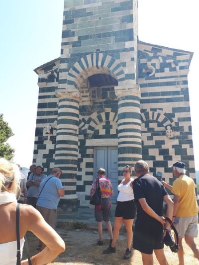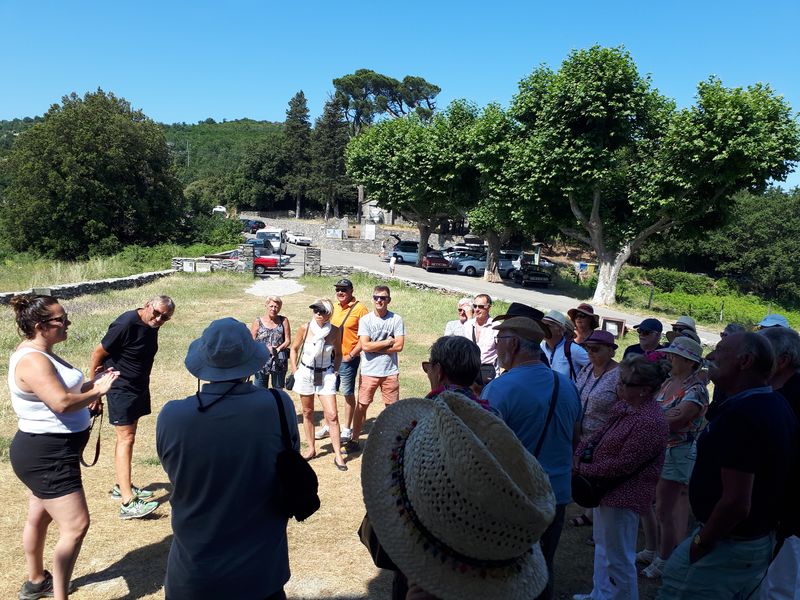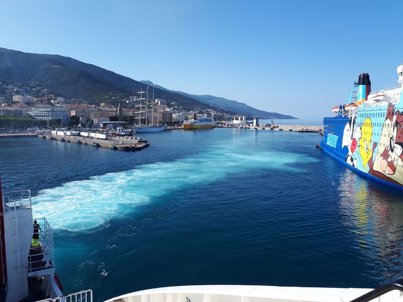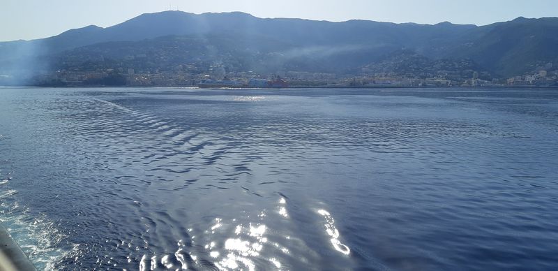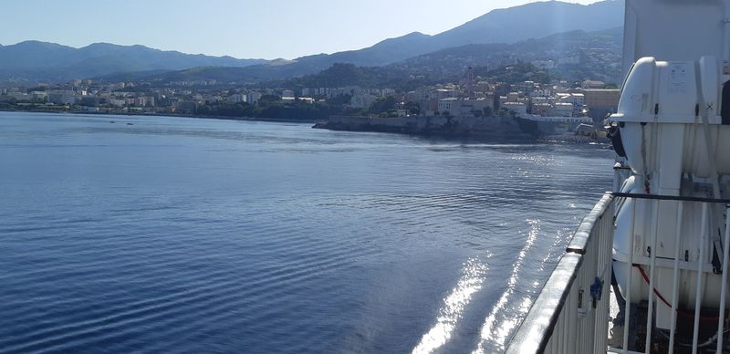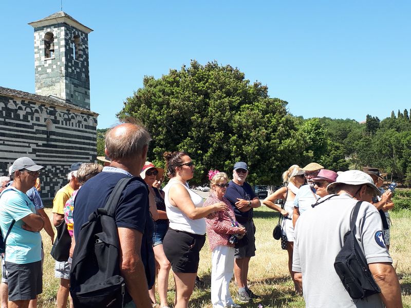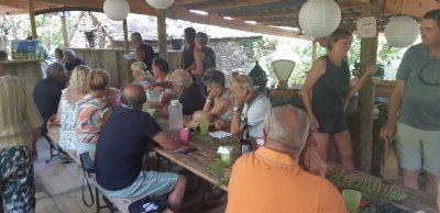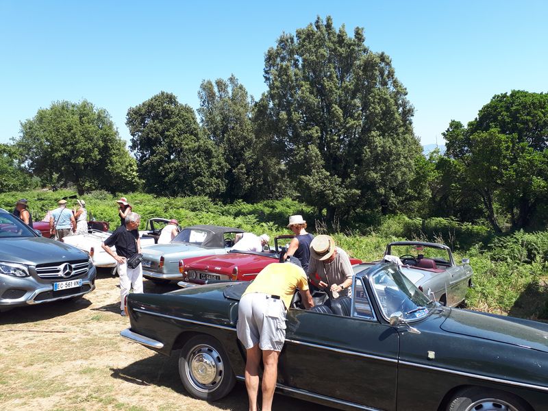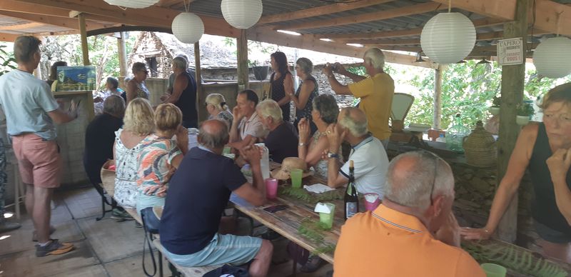 Nous sommes attendus à l’église San Michele par notre hôte. Ce midi pas de piquenique, repas champêtre à la ferme. Après une présentation de cette jolie église nous partons derrière le 4x4 de notre guide dans les petites routes de montagne puis chemin avant d’arriver à un parking. Une fourgonnette va hisser les petits marcheurs vers notre table campagnarde. Le reste de la troupe part à pied pour une petite demi-heure de marche (Christiane en tête !). Arrivée devant une ancienne bergerie pour un succulent repas de produits locaux. Remise de cadeaux par le président du BFCC. Retour au parking sous une chaleur étouffante toujours à pied et toujours Christiane devant ! Il faut redescendre à Bastia où nous sommes attendus pour embarquer. Et oui c’était notre dernier jour sur l’Ile de beauté.
