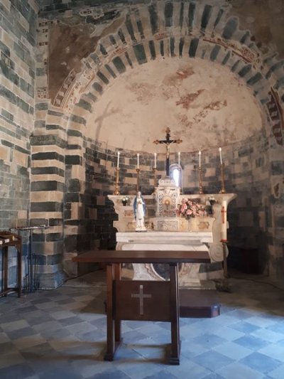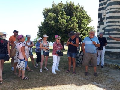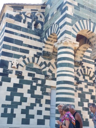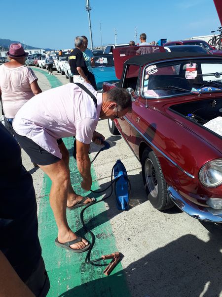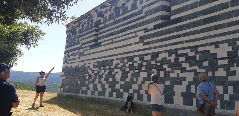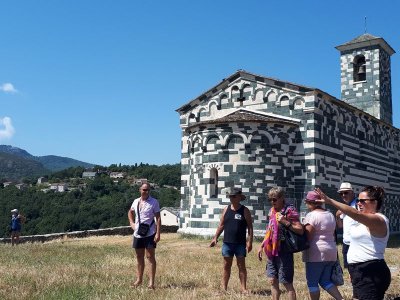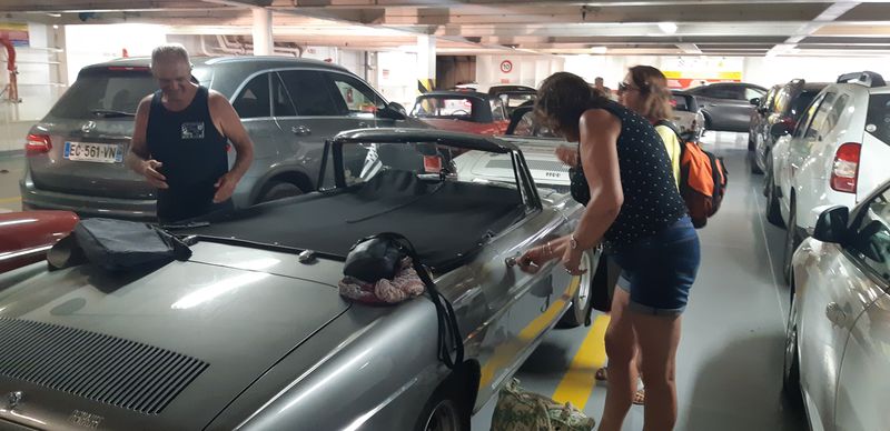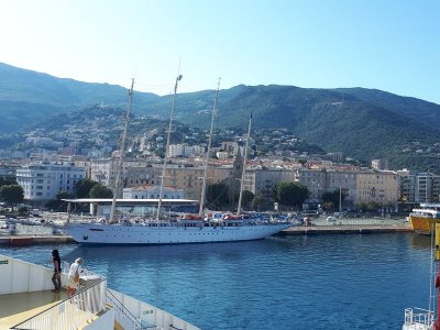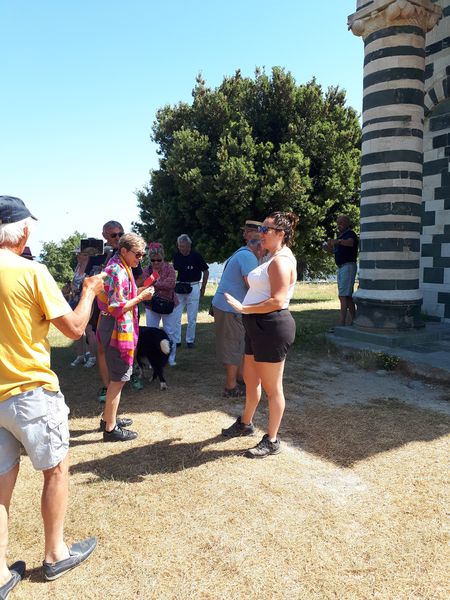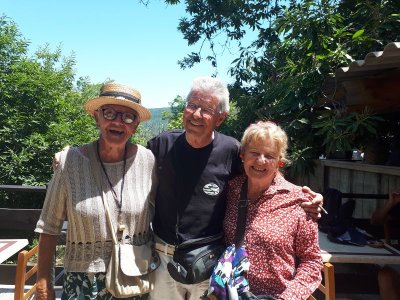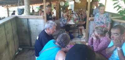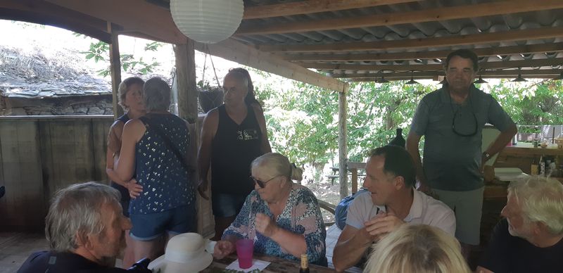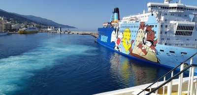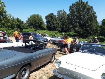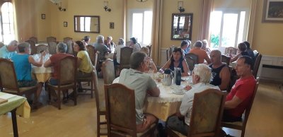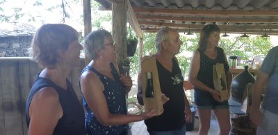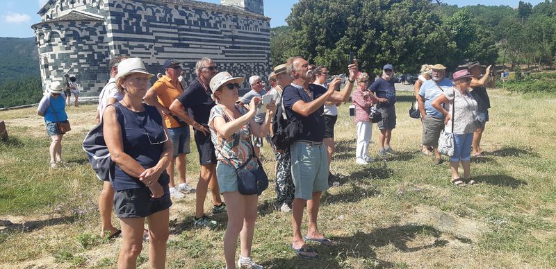 Nous sommes attendus à l’église San Michele par notre hôte. Ce midi pas de piquenique, repas champêtre à la ferme. Après une présentation de cette jolie église nous partons derrière le 4x4 de notre guide dans les petites routes de montagne puis chemin avant d’arriver à un parking. Une fourgonnette va hisser les petits marcheurs vers notre table campagnarde. Le reste de la troupe part à pied pour une petite demi-heure de marche (Christiane en tête !). Arrivée devant une ancienne bergerie pour un succulent repas de produits locaux. Remise de cadeaux par le président du BFCC. Retour au parking sous une chaleur étouffante toujours à pied et toujours Christiane devant ! Il faut redescendre à Bastia où nous sommes attendus pour embarquer. Et oui c’était notre dernier jour sur l’Ile de beauté.