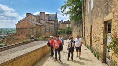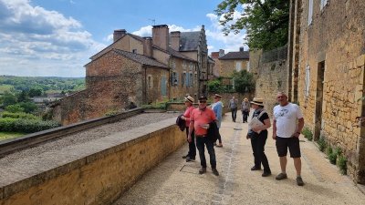 St Avit Sénieur : bâtie sur un éperon rocheux, ce village s’est développé autour de son abbaye fortifiée qui date du XIe siècle et fait à présent partie du Patrimoine mondial de l’Unesco. Pause rafraichissement à la petite épicerie.