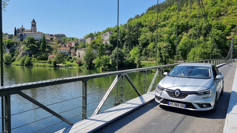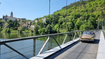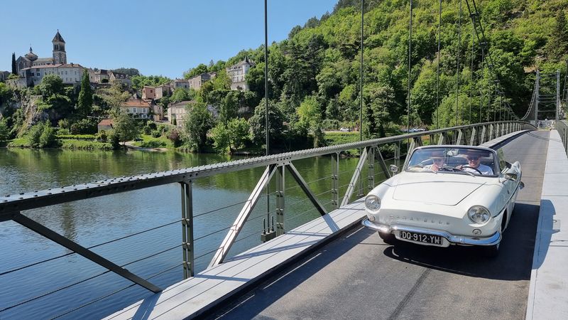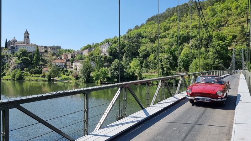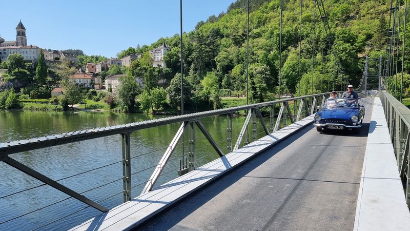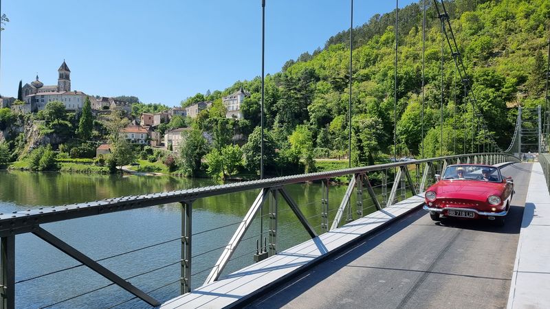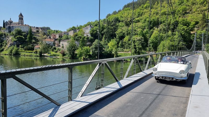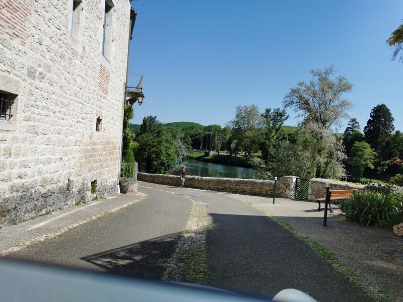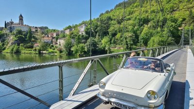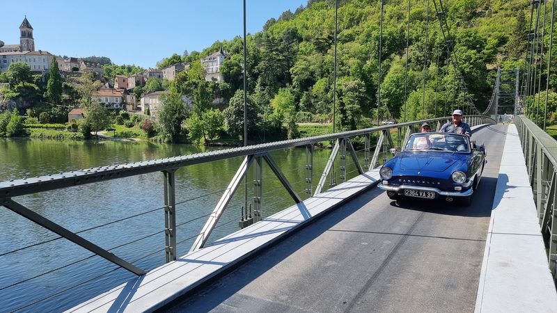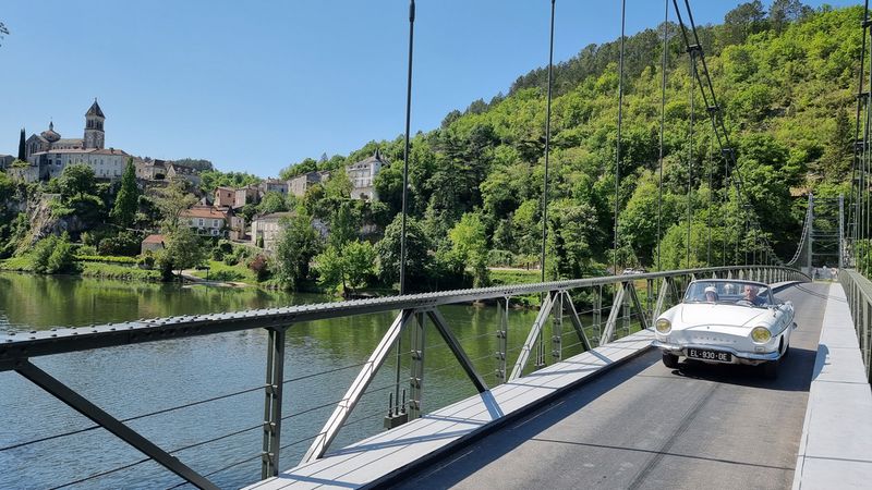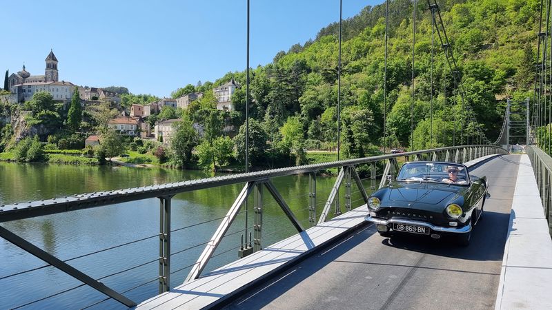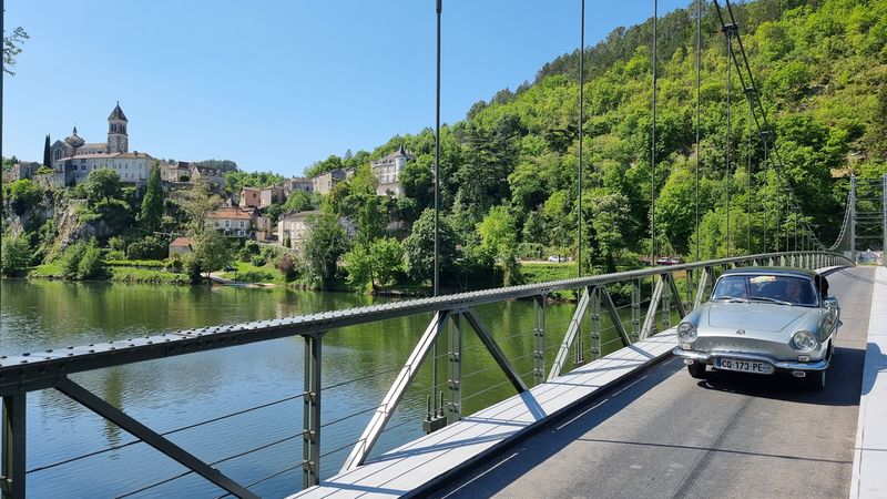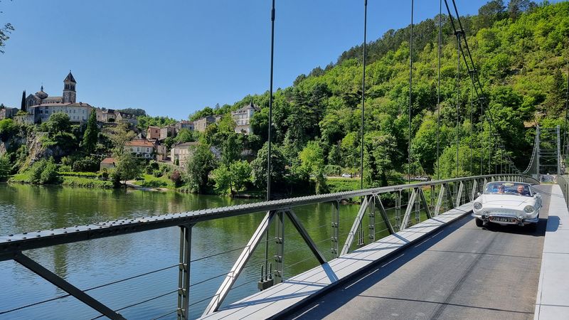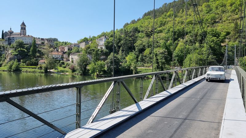 Dimanche 8 mai, nous allons sillonner paisiblement les petites routes qui bordent le Lot. Visite d’une cave et dégustation matinale de vins locaux puis, petite pose photo à Albas pendant la traversée du Lot sur un pont suspendu typique...