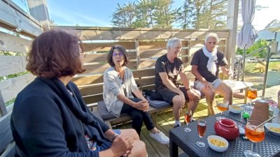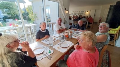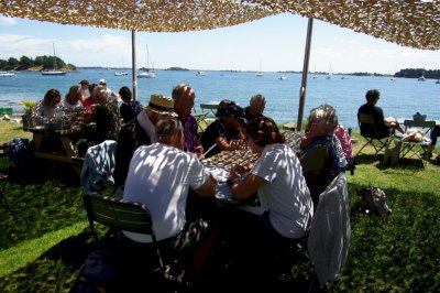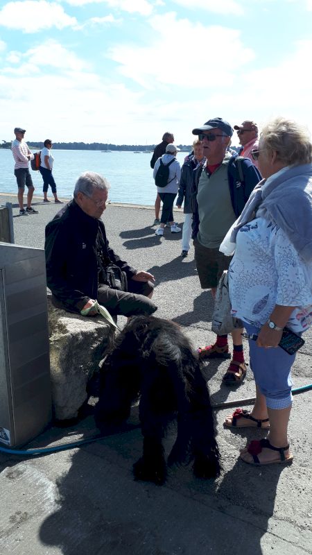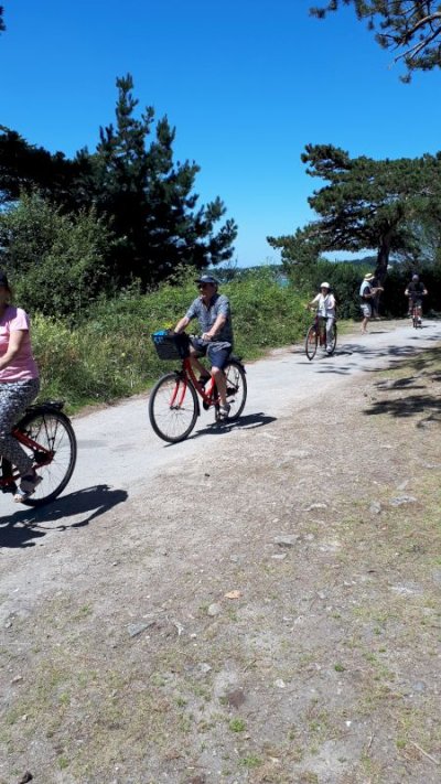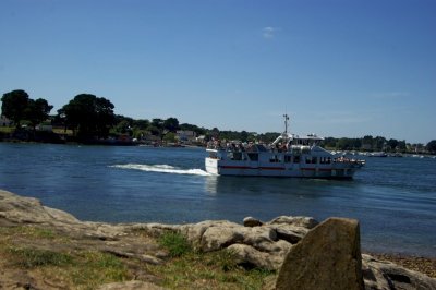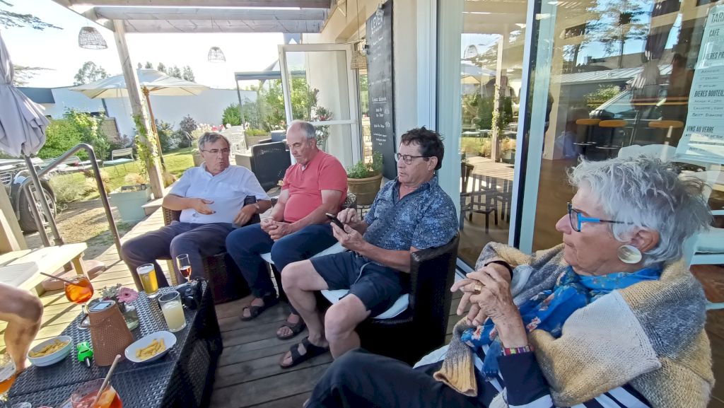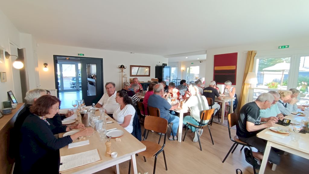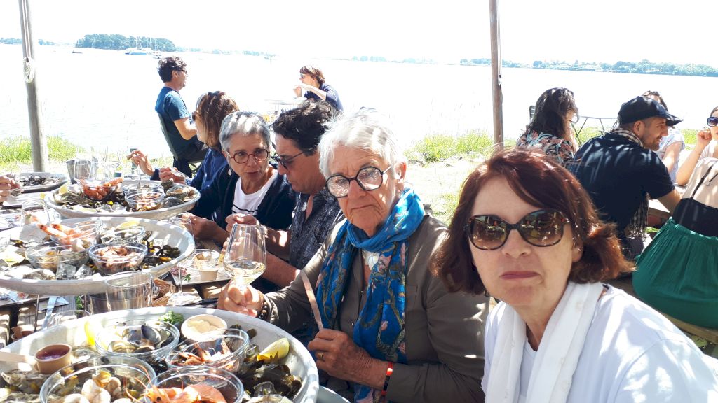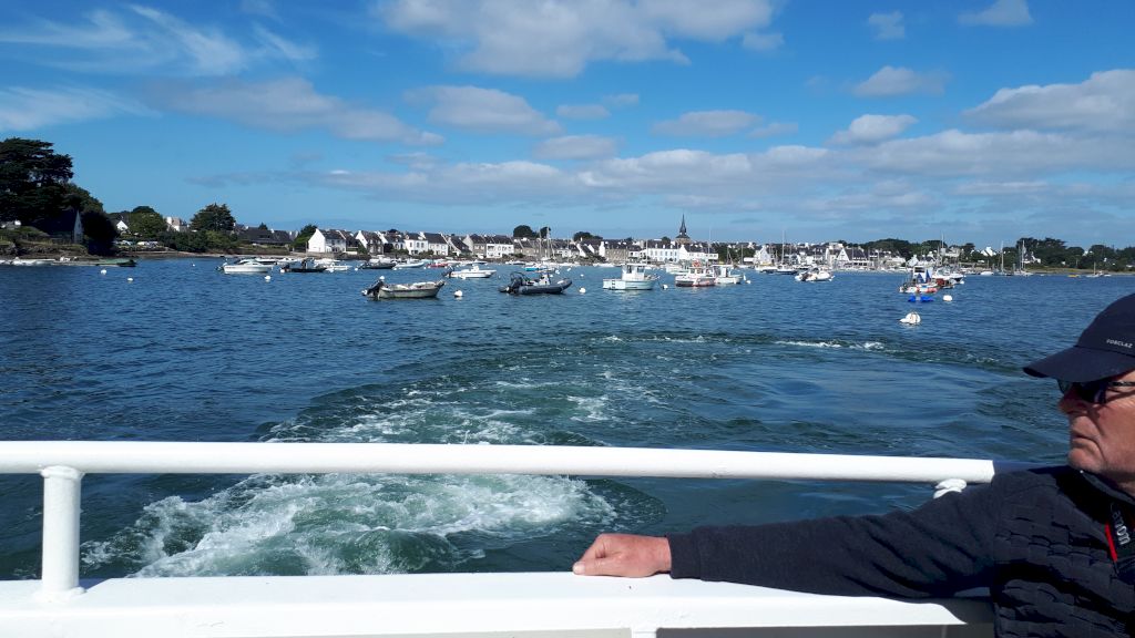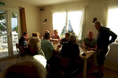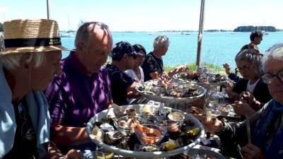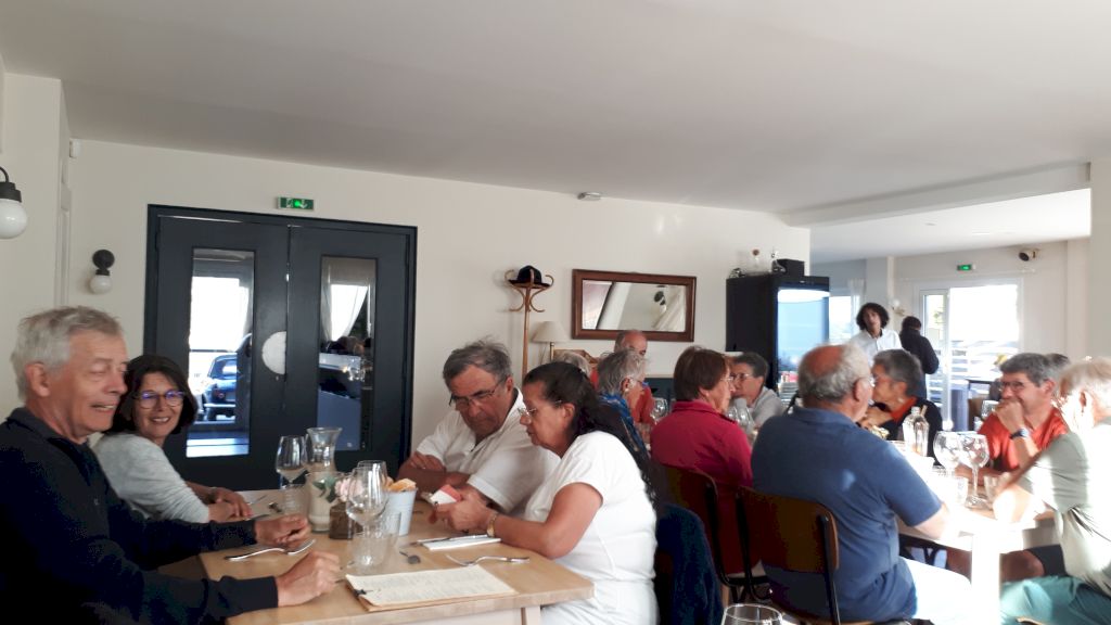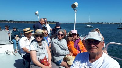 Cette journée sera consacrée au golf du Morbihan, départ vers Locmariaquer, joli petit port à l’entrée ouest du golf. Nous y embarquons à bord d’une vedette pour un grand tour du golf et une escale de quelques heures sur l’Ile aux Moines. Sur l’île, chacun organise son escale : les piétons, les cyclistes, les contemplatifs...Nous profitons des petits restaurants en bord de plage pour déguster de magnifiques plateaux de fruits de mer. Le retour à pied jusqu’à l’embarcadère est un peu plus compliqué sous un beau soleil mais une petite crêpe de quatre heures redonne de l’énergie. Et c’est reparti pour le port et le retour vers notre point de départ. Retour vers l’hôtel, organisation des voitures pour la photo de groupe et on se retrouve autour d’un petit verre de l’amitié avant le dernier repas dans un joyeux brouhaha... Demain retour vers le sud-ouest...