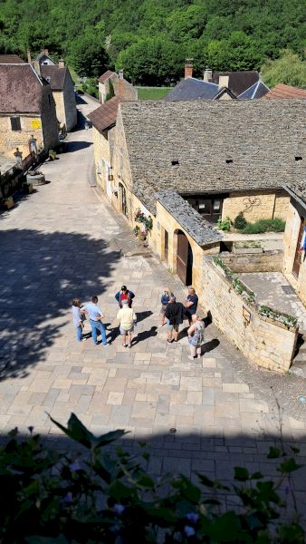 - Nous reprenons la route vers Saint-Amand-de-Coly village confortablement installé entre deux vallons boisés de la vallée de la Vézère. Son abbatiale du XIIe S, considérée comme la plus belle église fortifiée du Périgord, veille sur les maisons du village qui, tout comme elle, sont faites de cette pierre Sarladaise et de ces lauzes typiques de la région dans un contraste harmonieux de tons ocres et gris.