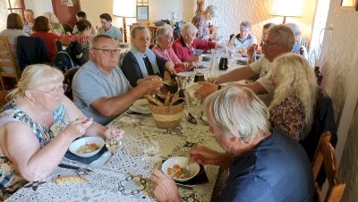 - La matinée avance et nous sommes attendus à la ferme auberge du Grand Coderc située à St Rabier. Repas pantagruélique concocté par Le chef Guillaume Gaillard, qui nous a fait l’amitié de partager quelques moments autour de nos Caravelle.